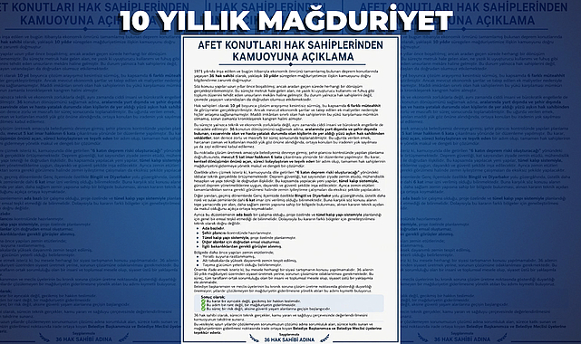 1971 yılında inşa edilen ve ekonomik ömrünü tamamlayan deprem konutlarında yaşayan 36 hak sahibi, yaklaşık 10 yıldır devam eden mağduriyetlerine ilişkin kamuoyuna açıklama yaptı. Hak sahipleri, sürecin doğru anlaşılması adına bilgilendirme yapma ihtiyacı duyduklarını belirtti. METRUK ALAN TEHLİKE SAÇIYOR