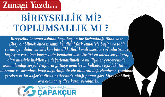 Birey olabilmek önce insanın kendisini fark etmesiyle başlar ve tabir yerindeyse daha emeklerken bile dikkatleri kendi üzerine yoğunlaştırmaya başlayan var olma kavgasında kendisini hissettirdiği en küçük sosyal grup olan ailesiyle ilişkileriyle değerlendirilmeli ve bu ilişkiler çerçevesinde konumlandığı sosyal grupların gittikçe genişleyen halkaları içindeki tutum, davranış ve sorunlara karşı duyarlılığı ile ele alınarak değerlendirme yapılması gereken ve bu değerlendirme neticesinde aldığı puana göre birey olabilmiş veya olamamış diye karar verebiliriz.